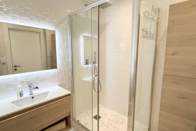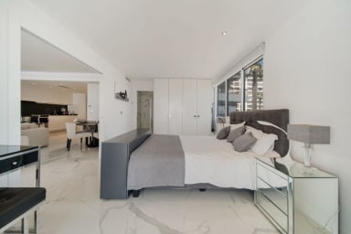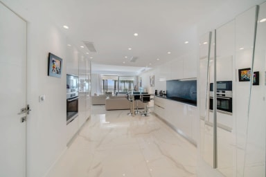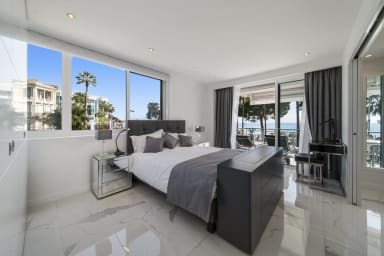 Modern renovated apartment with 2 bedrooms and 2 bathrooms, south facing large terrace with panoramic view of the sea and the Lerins Islands.