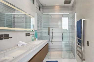 Other fittings: Villa fully domotized (alarm, videosurveillance, lighting design by scenario), High-end sound system in multi-room: in the 2 lounges in home cinema, sauna, master bedroom on the garden floor, roof terrace, terrace, garden, Wifi, parking for 4 cars.