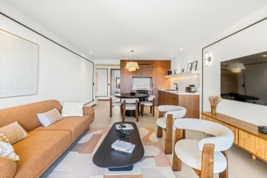 Spacious living and dining area opening onto the balcony. Fully equipped kitchen with premium appliances, ideal for both short and long stays.