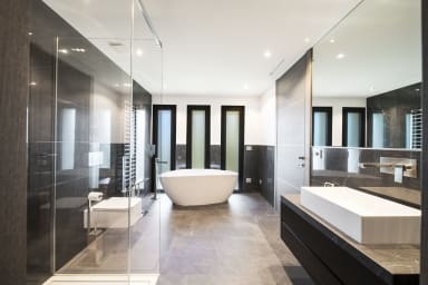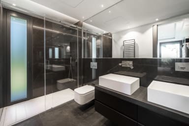 Chambre N°1 : lit double (180cm), dressing, salle de douche avec douche italienne, double vasque et toilette.