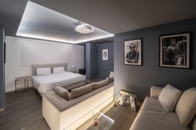 Salle de cinéma équipée de 2 canapés pouvant accueillir 10 personnes.