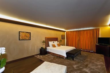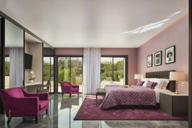 Chambre N°5 indépendante (50 m²) : lit double (180cm), dressing, salle de bain ensuite, toilettes, mini bar, télévision et coffre fort