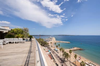 L'appartement bénéficie d'une vue panoramique sur la mer, les îles de Lérins ainsi que sur les collines de l'Estérel.